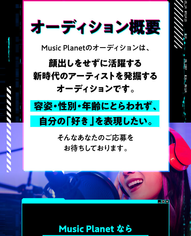 オーディションは事前の書類審査を一切行っていません。エントリーいただいた方全員の「想いと歌唱」を、音楽プロデューサーが直接審査します。